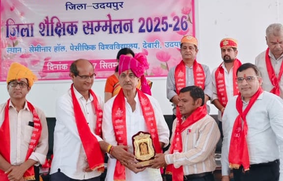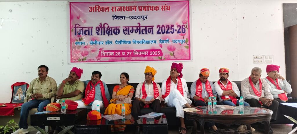 गांव की आवाज न्यूज उदयपुर। अखिल राजस्थान प्रबोधक संघ उदयपुर का जिला शैक्षिक सम्मेलन सेमिनार हॉल, पेसिफिक यूनिवर्सिटी देबारी उदयपुर में सम्पन्न हुआ।सम्मेलन के मुख्य अतिथि चंद्रगुप्त सिंह चौहान (पूर्व जिला अध्यक्ष भाजपा) थे, जबकि अति विशिष्ट अतिथि हेमंत कोठारी (कुलपति, पेसिफिक विश्वविद्यालय) रहे। सम्मेलन की अध्यक्षता सुखलाल डांगी (जिला अध्यक्ष, प्रबोधक संघ) ने की।विशिष्ट अतिथियों में दीपक शर्मा (महामंत्री, भाजपा देहात), बंसीलाल रेबारी (प्रदेश सभाध्यक्ष, अखिल राजस्थान प्रबोधक संघ), मीना शर्मा (मुख्य ब्लॉक प्रारंभिक शिक्षा अधिकारी, कुराबड़), गुलाब सिंह सिसोदिया (संभाग अध्यक्ष), एवं दिलीप सिंह (जिला अध्यक्ष, संयुक्त कर्मचारी महासंघ) शामिल रहे।