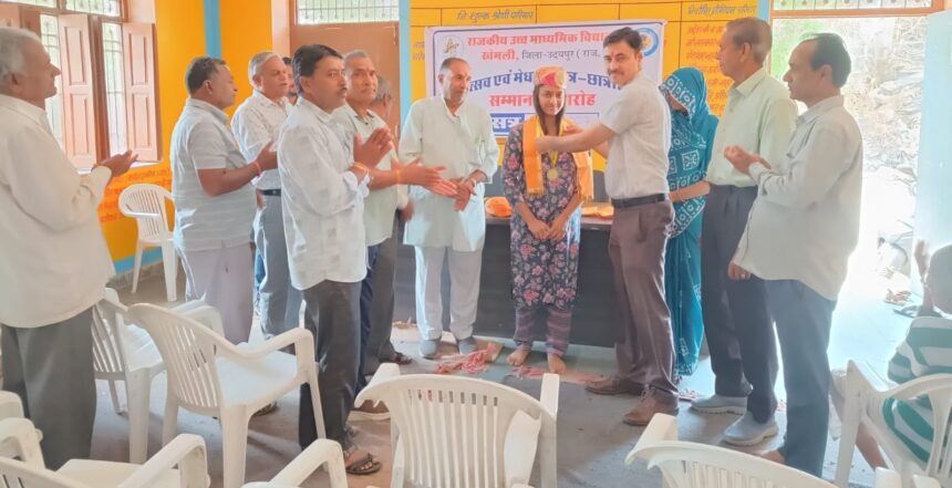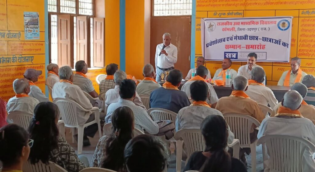 गांव की आवाज न्यूज मावली। ग्राम पंचायत खेमली के सभागार में विद्यालय के प्रतिभावान छात्र-छात्राओं का सम्मान समारोह आयोजित किया गया। कार्यक्रम में प्रवेशोत्सव के तहत उपस्थित अभिभावकों को अपने बच्चों एवं आसपास क्षेत्र के बच्चों को प्रतिदिन समय पर विद्यालय भेजने की शपथ दिलवाई गई। सभी अभिभावकों ने सहर्ष शपथ लेते हुए यह संकल्प लिया कि राजस्व ग्राम खेमली का कोई भी बालक शिक्षा से वंचित नहीं रहेगा तथा बच्चों की पढ़ाई पर नियमित ध्यान रखा जाएगा।