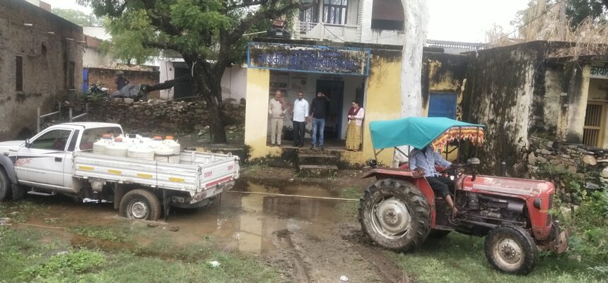 गांव की आवाज न्यूज मावली I मावली उपखंड क्षेत्र की ग्राम पंचायत घासा स्थित पशु चिकित्सालय परिसर में गुरुवार को लगातार हो रही बारिश के कारण बड़ा हादसा टल गया। पशुपालन विभाग की ओर से दवा सप्लाई (मेडिसिन सप्लाई) लेकर आई एक गाड़ी परिसर में बने गहरे कीचड़ (दलदल) में फंस गई।