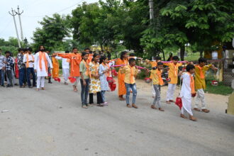 पलाना कलां में कावड़ यात्रा निकाली गई, महादेव मंदिर में जलाभिषेक के बाद प्रसाद वितरण